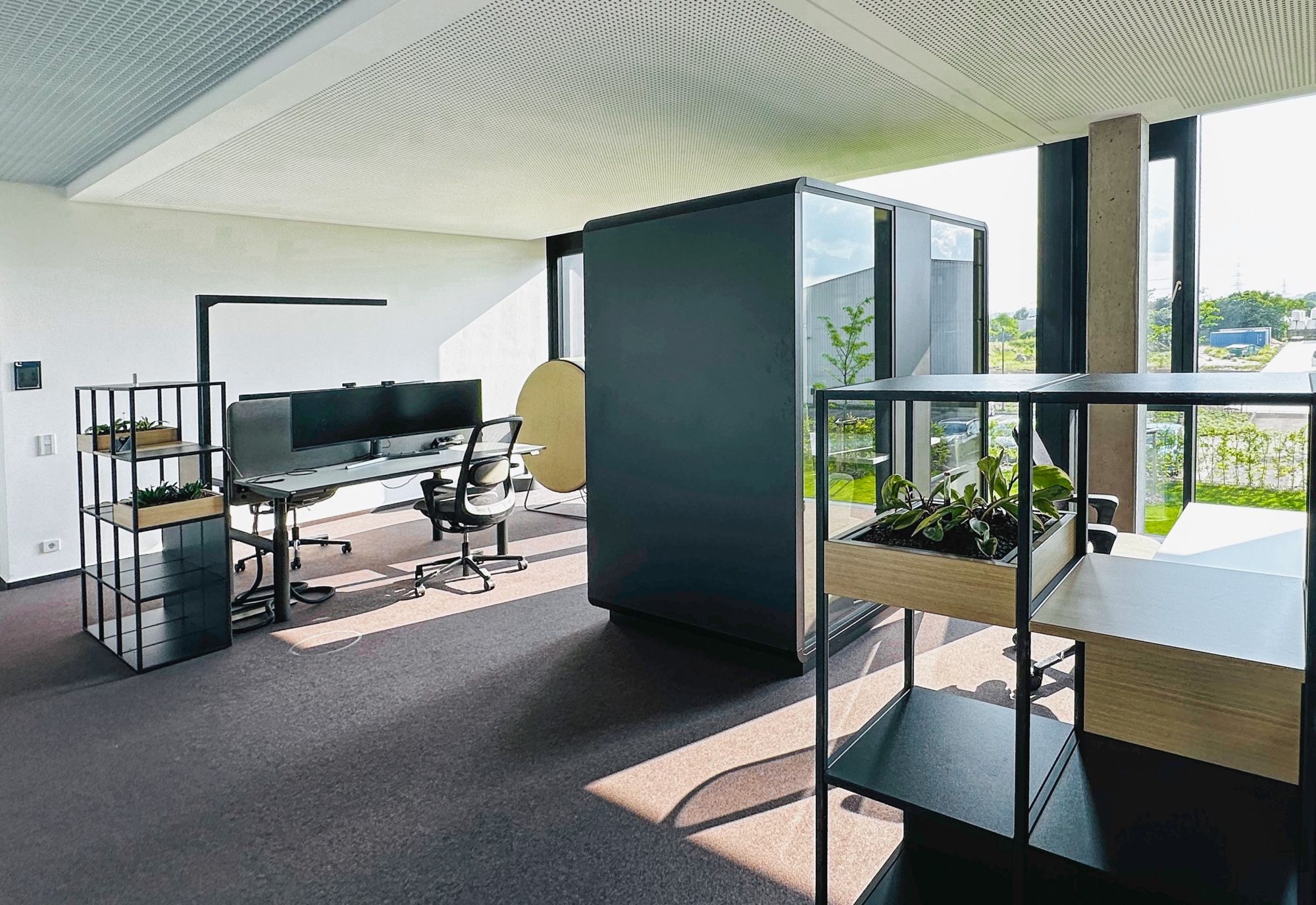 Le processus de planification a débuté en octobre 2022 et des ateliers de planification ont été organisés avec les représentants des employés de tous les départements, qui ont servi de base à la planification du mobilier. Un concept de design moderne et attrayant a été développé en consultation avec l'équipe marketing de Liftstar, en accord avec le concept de bureau. Les résultats ont été mis en œuvre dans un plan d'ameublement et le mobilier a été sélectionné dans le cadre d'une procédure d'appel d'offres.