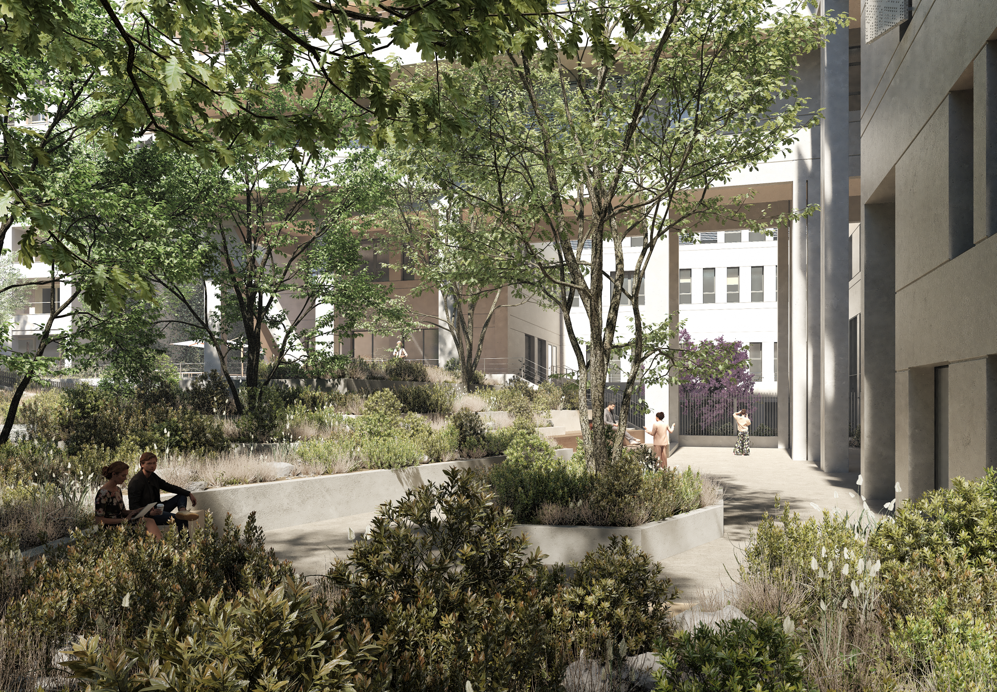 - Partially underground parking on 2 levels and a bike room on the ground floor, a garden and large green terraces, a 250m² Data center room